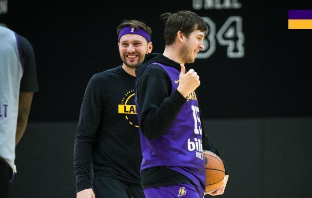 东契奇和里夫斯在训练场上也挂着笑容。东契奇是本赛季的联盟得分王。里夫斯本赛季场均得分位居联盟前十,有机会生涯首次进入全明星赛。艾顿在努力练习篮下进攻。对阵马刺的比赛,艾顿在内线的攻防非常重要。