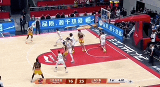 本节后半段,上海队连换三人,崔晓龙、怀特塞德与李添荣上场。李添荣在短短3分46秒的登场时间内,三分线外3投3中,砍下9分,帮助上海男篮第一节34比28领先江苏。