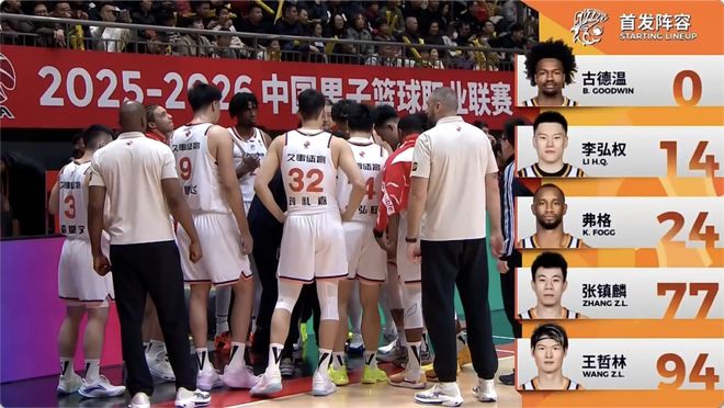 本场比赛,卢伟对阵容做出调整,弗格与张镇麟替代李添荣、洛夫顿先发亮相,其他三人没有变化,依然是古德温、李弘权与王哲林。