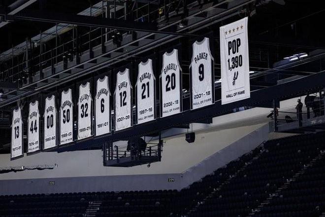 功勋永驻,马刺主场未安排仪式直接升起了波波维奇的纪念旗帜