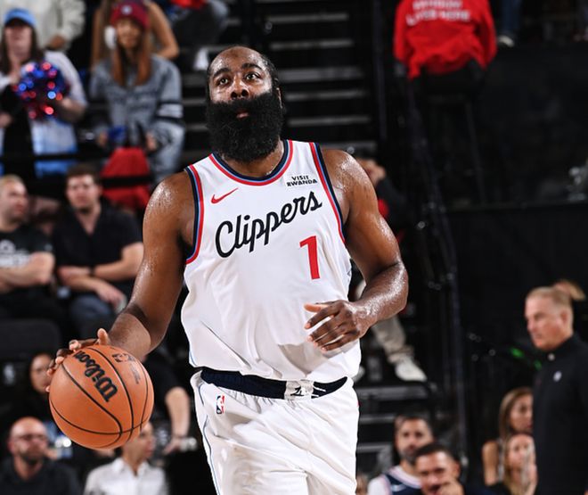 快船方面比尔缺阵,首发:哈登+博格丹+琼斯+伦纳德+祖巴茨,开拓者方面利拉德、亨德森缺阵,首发:霍勒迪+夏普+阿夫迪亚+卡马拉+克林根。