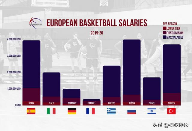 WNBA球员的平均工资在6.6万美元—25万美元之间,欧洲的主流女篮联赛土耳其、俄罗斯、西班牙等也相差无几。