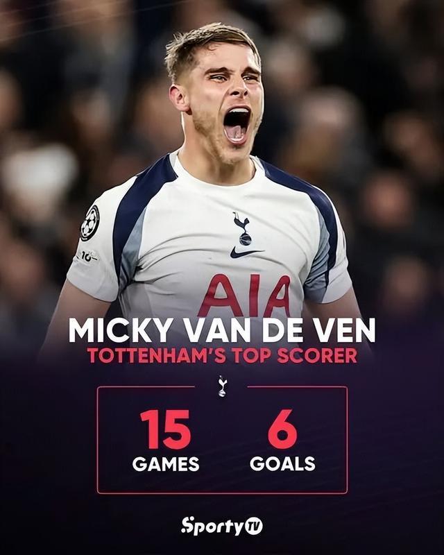 本赛季,热刺迎来了新帅弗兰克,夏窗也引进了哈维·西蒙斯、穆阿尼、库杜斯等攻击手。但由于索兰克一直伤缺,热刺在开赛之后依旧面临着“锋无力”的困扰。而范德文的爆发,很好的弥补了热刺的进攻缺陷。他的6粒进球也超越了布伦南-约翰逊(4球)、帕利尼亚(4球),稳坐热刺队内头号射手宝座。