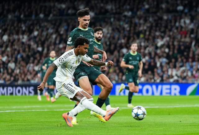 第28分钟,皇马打破僵局,贝林厄姆中路带球突破后,分给边路的罗德里戈,后者轻松破门。1-0!本赛季开始后,罗德里戈一直处于进球荒,本场比赛终于取得进球。