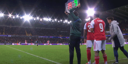 第63分钟,阿森纳连换两人,热苏斯、卡拉菲奥里替补登场