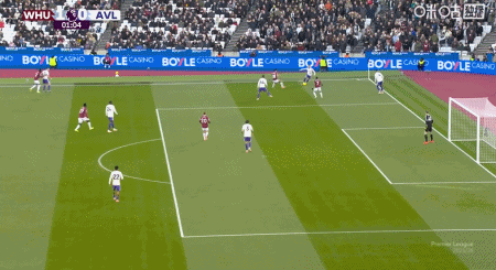 第1分钟,完美开局,费尔南德斯抢断成功小角度破门,西汉姆联1-0维拉
