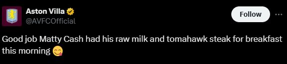 维拉官方调侃哈兰德:卡什今天早晨吃的也是生牛奶和战斧牛排